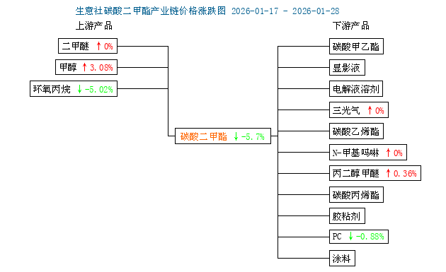 环氧丙烷:价格下跌5.02%,是DMC主要原料之一,其走弱直接削弱了DMC的成本支撑,叠加EO/PO酯交换法利润收窄,企业降价去库意愿增强。