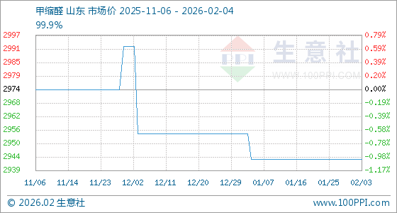 2月4日,生意社甲缩醛基准价为2944.00元/吨,与本月初持平。