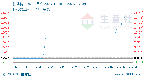 2月4日生意社溴化钠基准价为21000.00元/吨