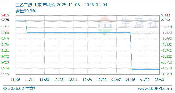 2月4日生意社三乙二醇基准价为8966.67元/吨