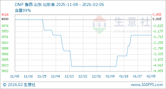 2月6日,生意社DMF基准价为3940.00元/吨,与本月初持平。