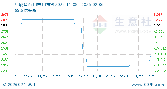 2月6日,生意社甲酸基准价为2440.00元/吨,与本月初(2350.00元/吨)相比,上涨了3.83%。