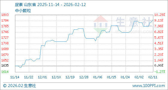 2月12日,生意社尿素基准价为1787.50元/吨,与本月初(1782.50元/吨)相比,上涨了0.28%。