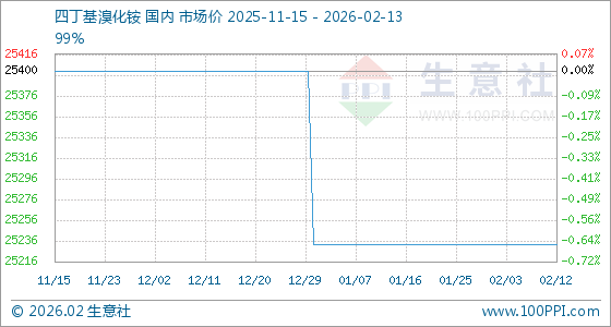2月13日生意社四丁基溴化铵基准价为25233.33元/吨