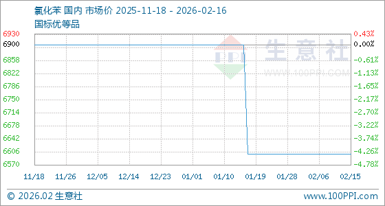 2月16日生意社氯化苯基准价为6600.00元/吨