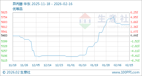 2月16日生意社异丙醇基准价为5650.00元/吨