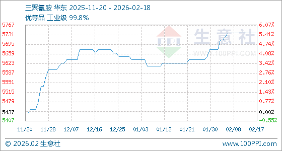 2月18日生意社三聚氰胺基准价为5737.50元/吨