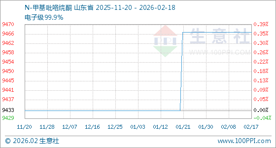 2月18日生意社N-甲基吡咯烷酮基准价为9466.67元/吨