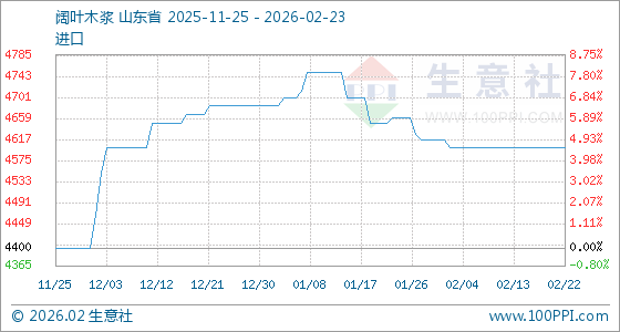 - 2月23日生意社阔叶木浆基准价为4600.00元/吨