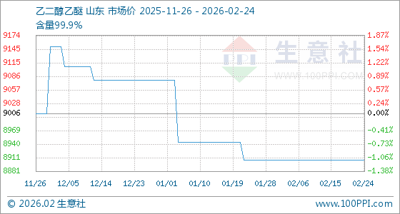 2月24日生意社乙二醇乙醚基准价为8906.25元/吨