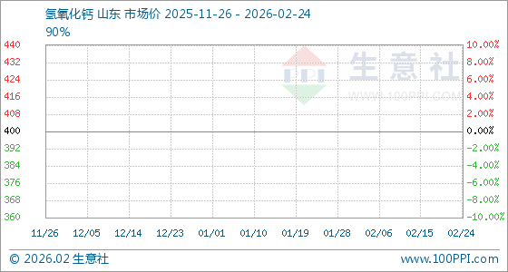 2月24日,生意社氢氧化钙基准价为400.00元/吨,与本月初持平。