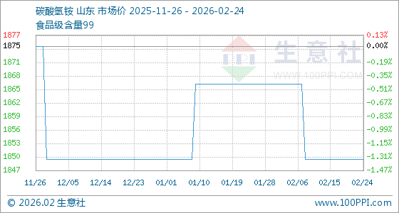2月24日生意社碳酸氢铵基准价为1850.00元/吨