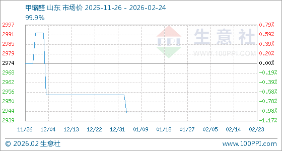 2月24日,生意社甲缩醛基准价为2944.00元/吨,与本月初持平。