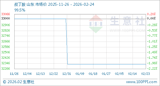 2月24日生意社叔丁胺基准价为32333.33元/吨