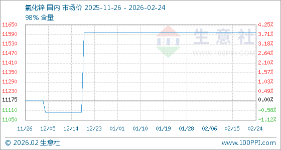 2月24日生意社氯化锌基准价为11600.00元/吨