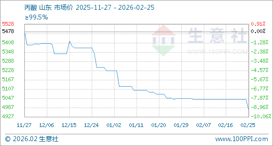 2月25日生意社丙酸基准价为5040.00元/吨